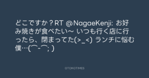 Koyo Maeda @koyomaeda – 12:27・2011年7月5日 2011 7/05 前田耕陽 2011-07-05 どこですか?RT @NagaeKenji: お好み焼きが食べたい~ いつも行く店に行ったら、閉まってた(>_<) ランチに悩む僕…(⌒-⌒; ) Source:https://x.com/koyomaeda/status/88086453069955072 text X Post 前田耕陽 前田耕陽 この記事が気に入ったら フォローしてね! Follow @OtokoTimes1988 よかったらシェアしてね! URLをコピーしました! Koyo Maeda @koyomaeda - 9:14・2011年7月5日 Koyo Maeda @koyomaeda - 13:42・2011年7月5日 関連記事 Artist 前田耕陽 1968.08.16