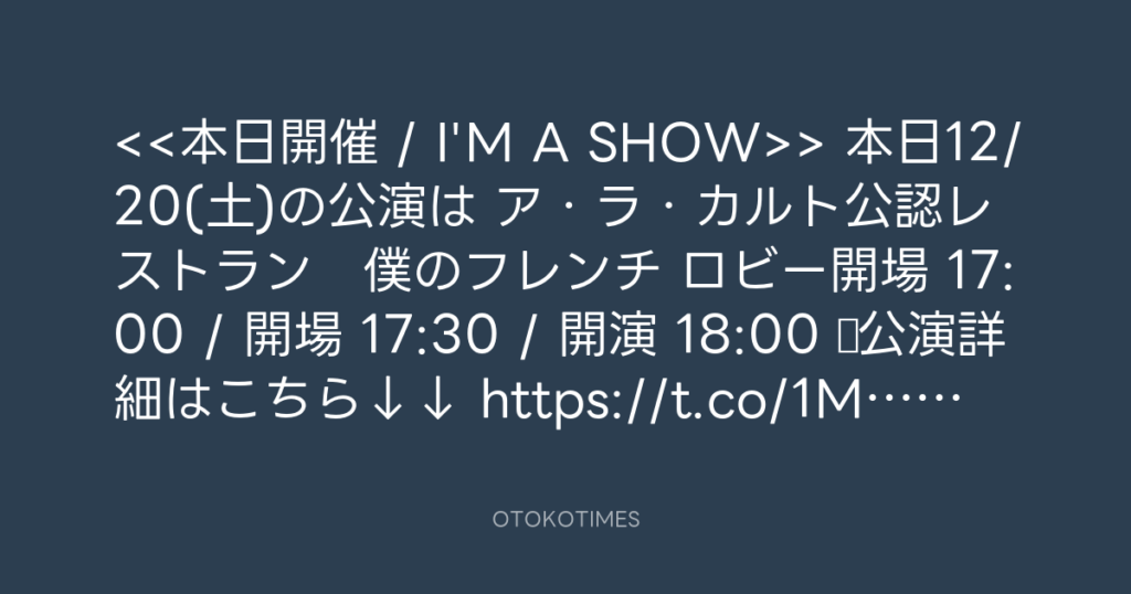 <<本日開催 / I'M A SHOW>> 本日12/20(土)の公演は ア・ラ・カルト公... -