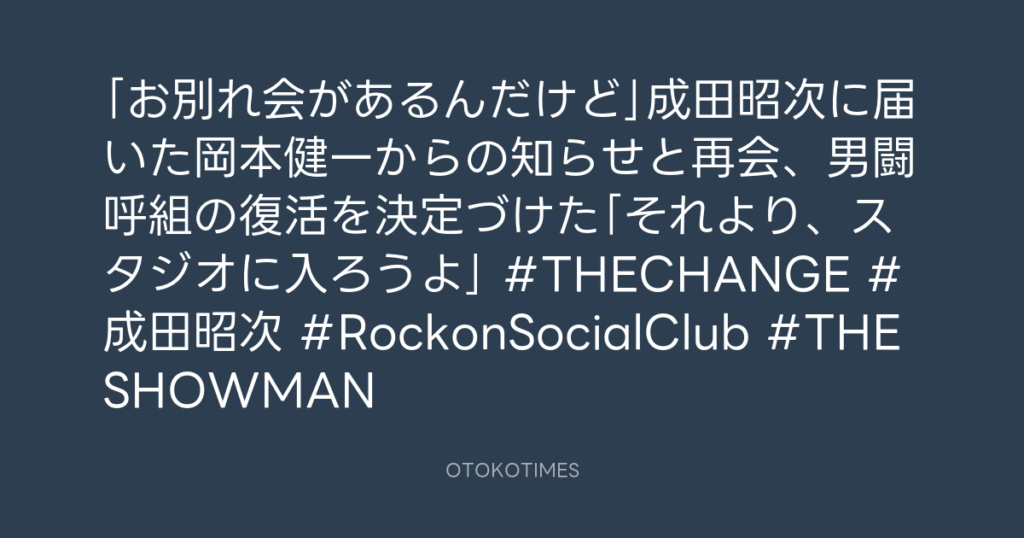 「お別れ会があるんだけど」成田昭次に届いた岡本健一からの知らせと再会、男闘呼組... -