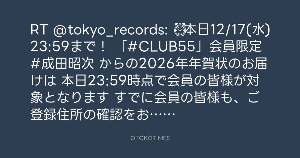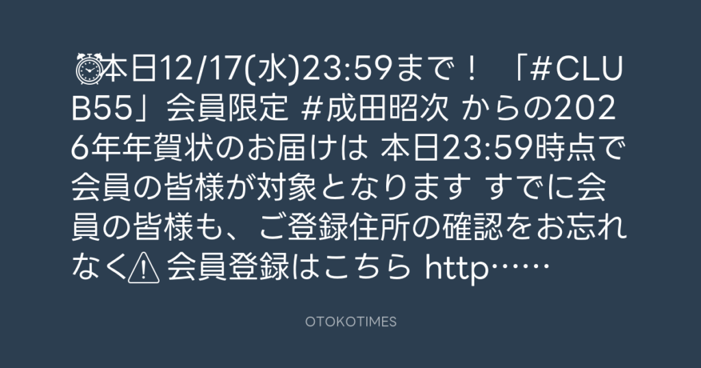 ⏰本日12/17(水)23:59まで! 「#CLUB55」会員限定 #成田昭次 からの2026年年賀状の... -