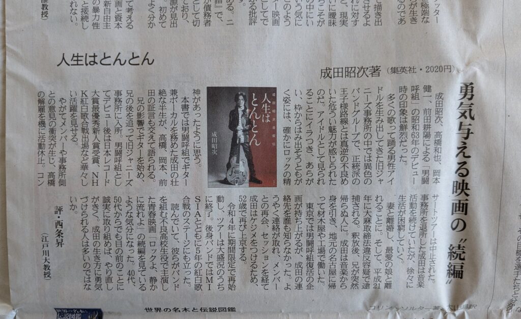 本日3/15の産経新聞に、私、西条昇による、元「男闘呼組」のギター兼ボーカルの成... -