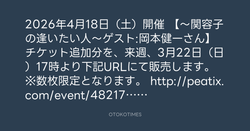 2026年4月18日(土)開催 【〜関容子の逢いたい人〜ゲスト:岡本健一さん】 チケッ...