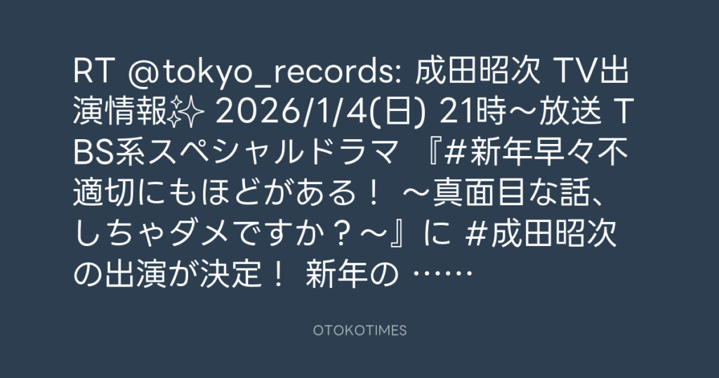 📺成田昭次 TV出演情報✨ 2026/1/4(日) 21時〜放送 TBS系スペシャルドラマ 『#新年... -