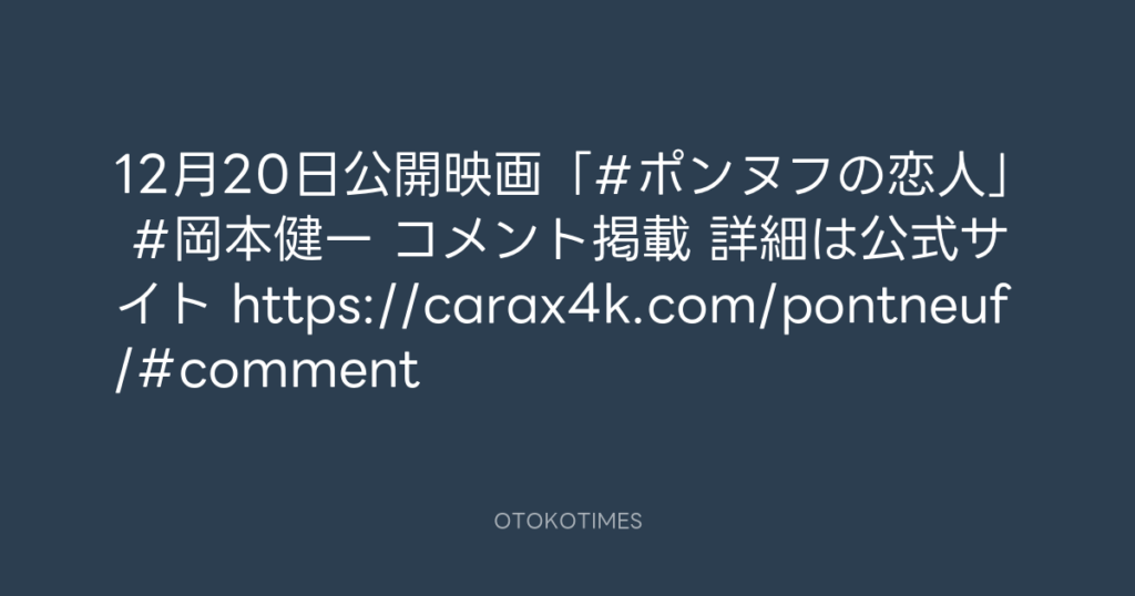 12月20日公開映画「#ポンヌフの恋人」 #岡本健一 コメント掲載 詳細は公式サイト h... -