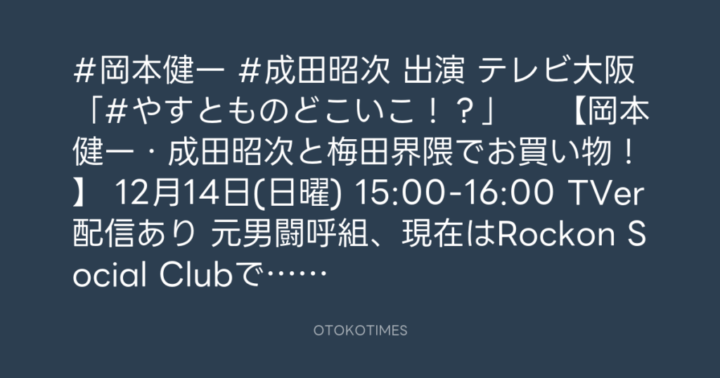#岡本健一 #成田昭次 出演 📺テレビ大阪 「#やすとものどこいこ!?」 【岡本健... -
