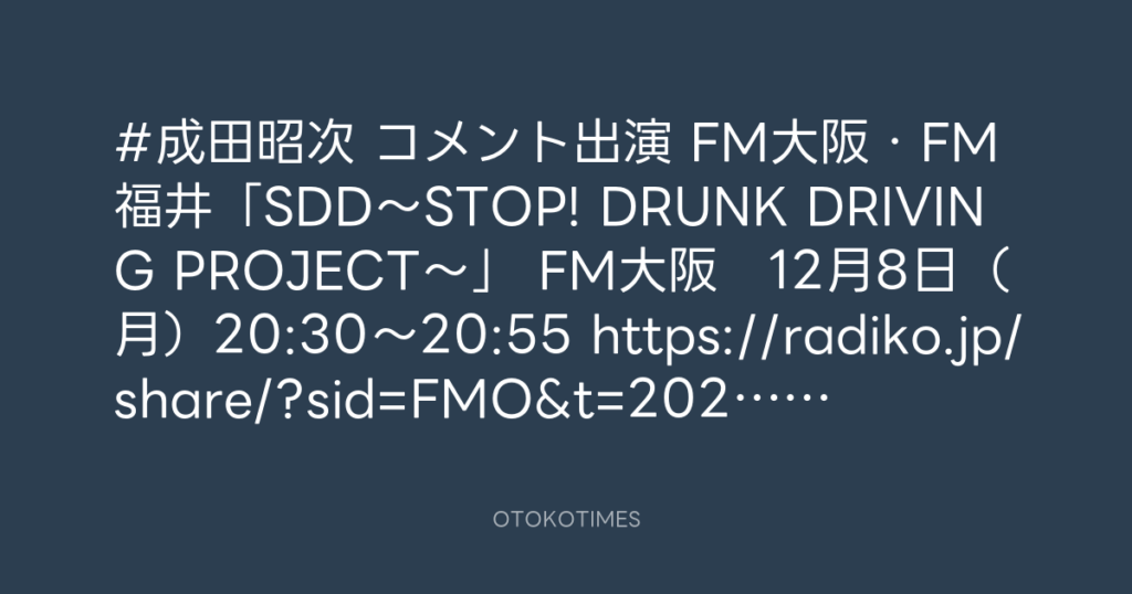 #成田昭次 コメント出演 📻FM大阪・FM福井「SDD~STOP! DRUNK DRIVING PROJECT~」... -