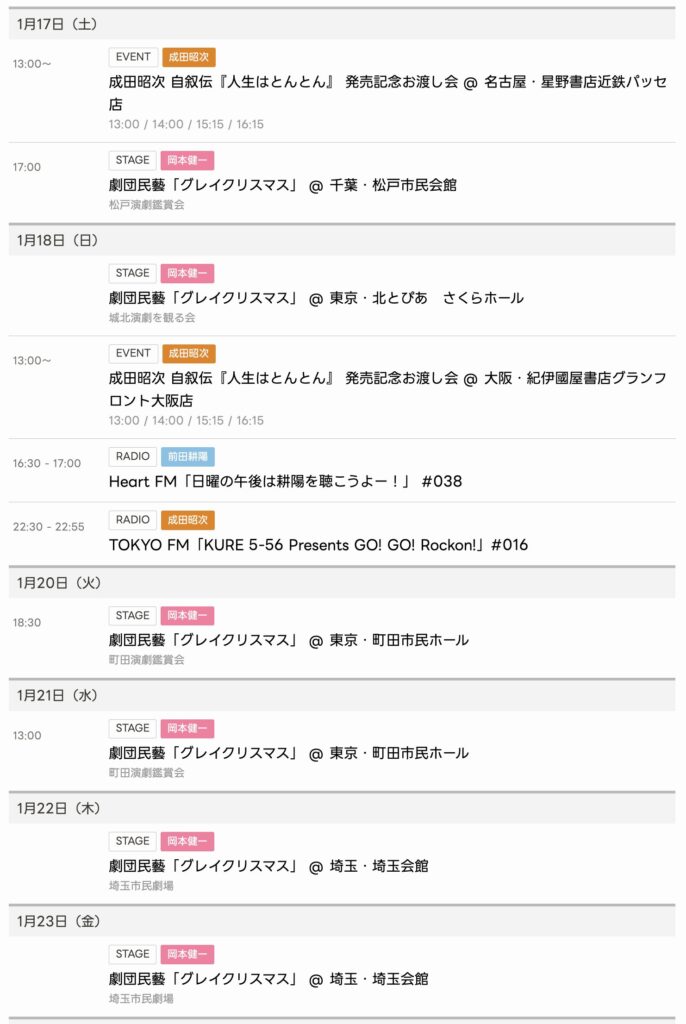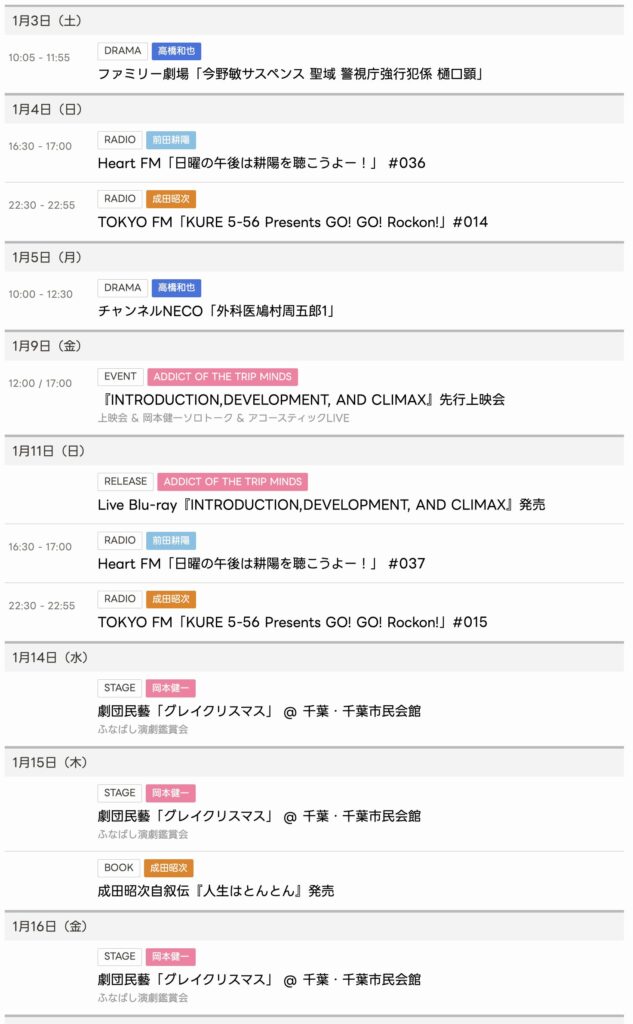 2026/1/3〜1/16までのスケジュールをお届けします。 ※現時点で確認可能な範囲のみ... -