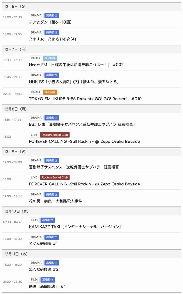 12/5〜12/11までのスケジュールをお届けします。 ※現時点で確認可能な範囲のみ。 ... -