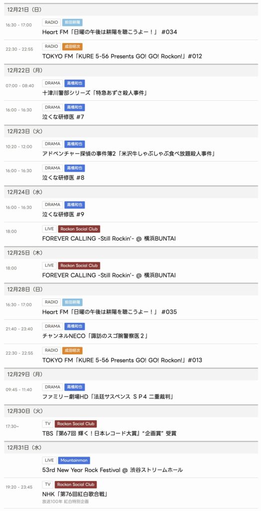 12/21〜12/31までのスケジュールをお届けします。 ※現時点で確認可能な範囲のみ。 ... -