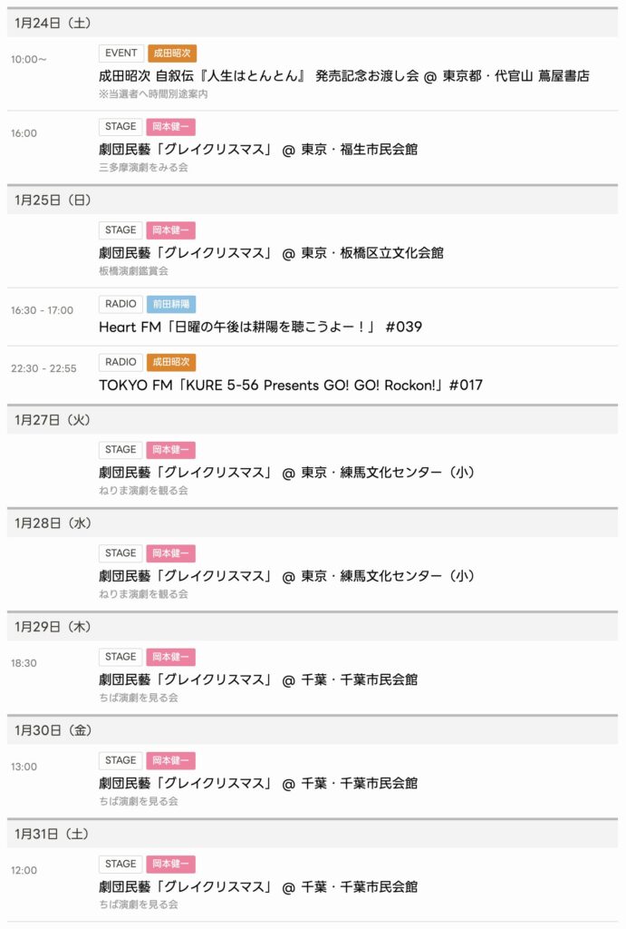 2026/1/24〜1/31までのスケジュールをお届けします。 ※現時点で確認可能な範囲のみ... -