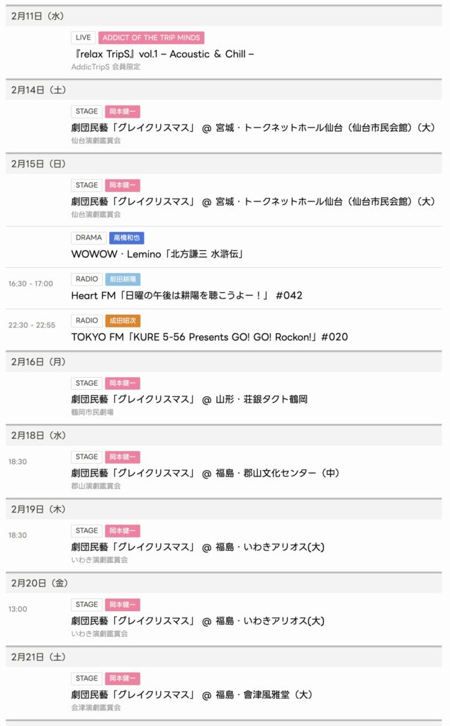 2026/2/11〜2/21でのスケジュールをお届けします。 ※現時点で確認可能な範囲のみ。... -