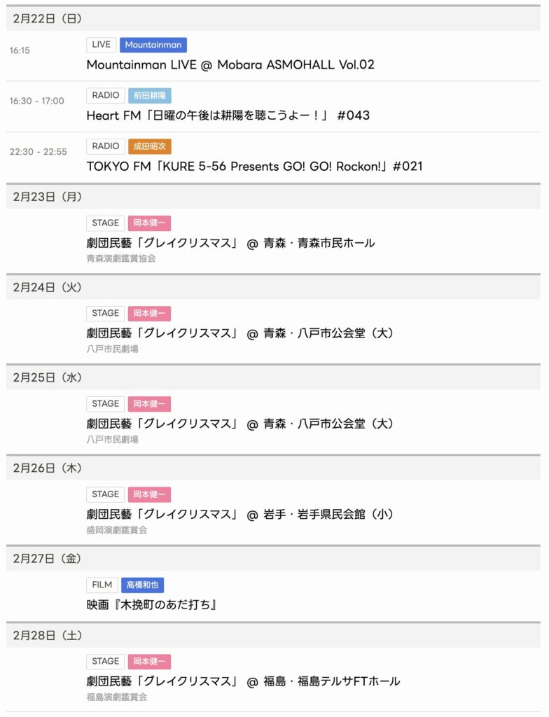 2026/2/22〜2/28でのスケジュールをお届けします。 ※現時点で確認可能な範囲のみ。... -