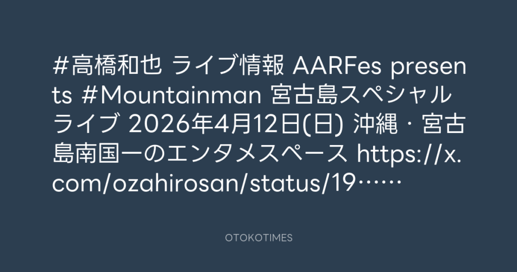 #高橋和也 ライブ情報 AARFes presents #Mountainman 宮古島スペシャルライブ 🗓️20... -