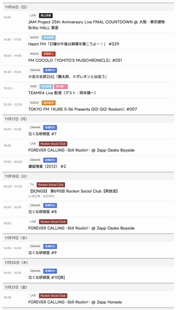 11/16〜11/21までのスケジュールをお届けします。 ※現時点で確認可能な範囲のみ。 ... -