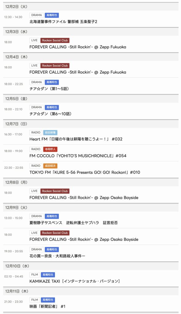 12/2〜12/11までのスケジュールをお届けします。 ※現時点で確認可能な範囲のみ。 ... -