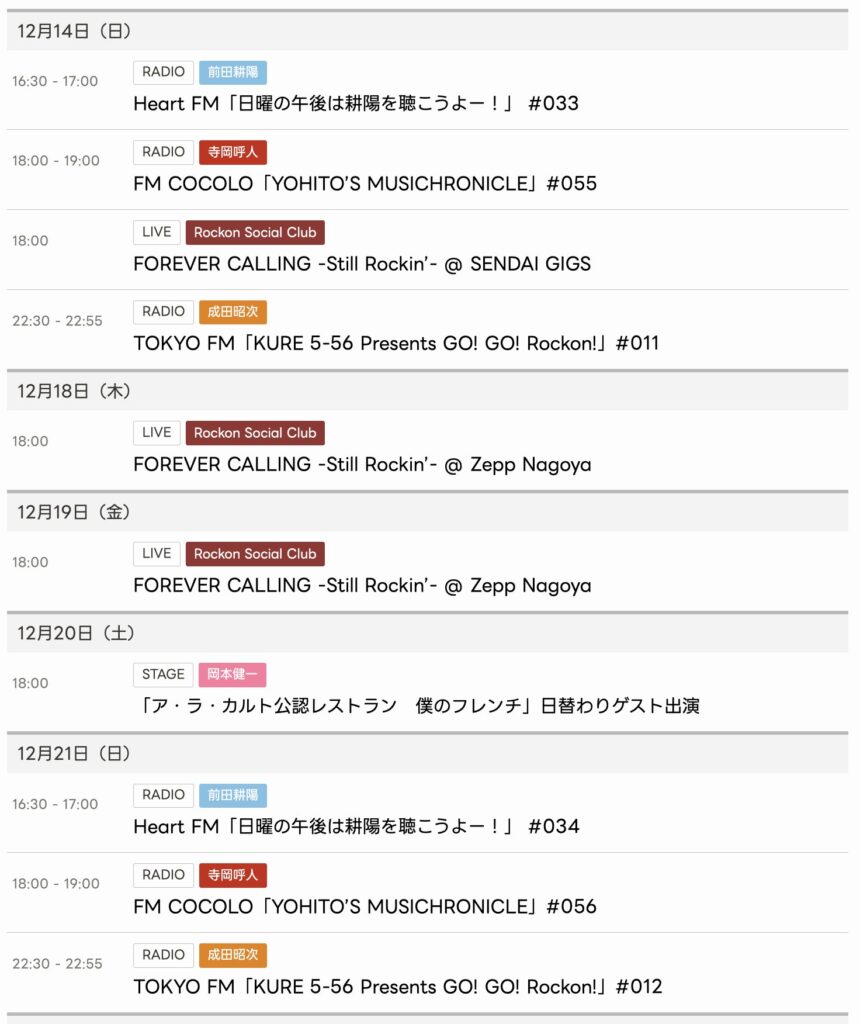 12/14〜12/21までのスケジュールをお届けします。 ※現時点で確認可能な範囲のみ。 ... -