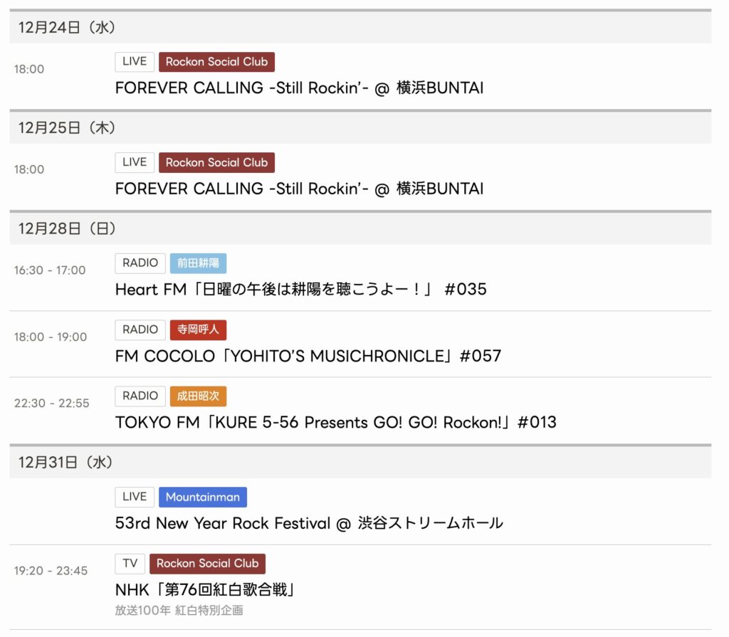 12/24〜12/31までのスケジュールをお届けします。 ※現時点で確認可能な範囲のみ。 ... -