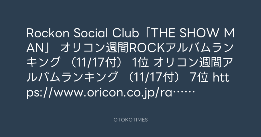 🥇 Rockon Social Club「THE SHOW MAN」 オリコン週間ROCKアルバムランキング (11... -
