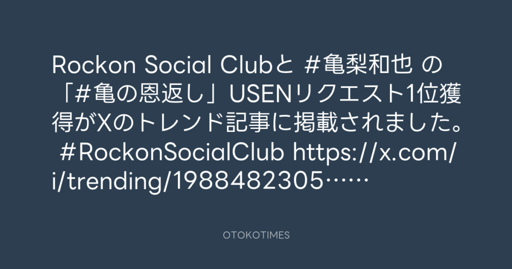 Rockon Social Clubと #亀梨和也 の「#亀の恩返し」USENリクエスト1位獲得がXのト... -