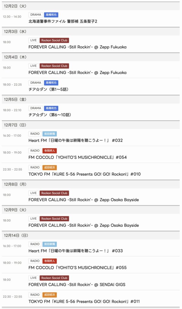 12/2〜12/14までのスケジュールをお届けします。 ※現時点で確認可能な範囲のみ。 ...