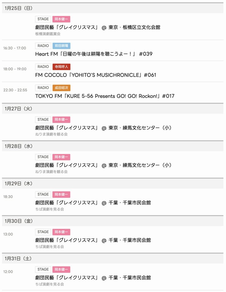 2026/1/25〜1/31までのスケジュールをお届けします。 ※現時点で確認可能な範囲のみ... -