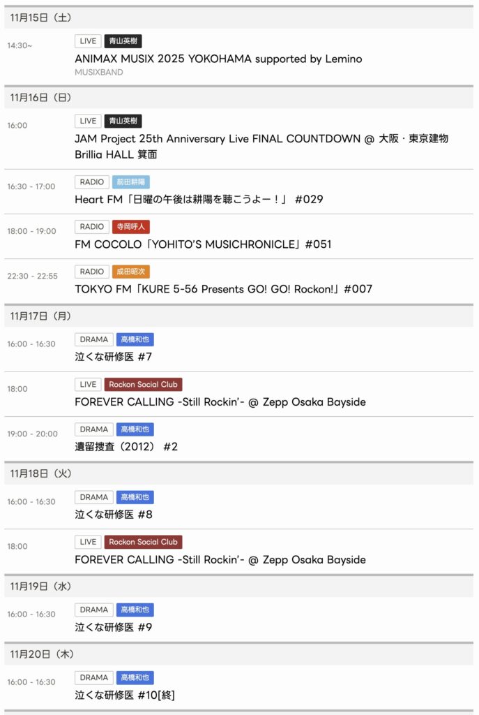 11/15〜11/20までのスケジュールをお届けします。 ※現時点で確認可能な範囲のみ。 ... -