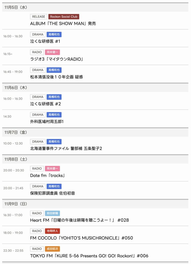 11/5〜11/9までのスケジュールをお届けします。 ※現時点で確認可能な範囲のみ。 (... -