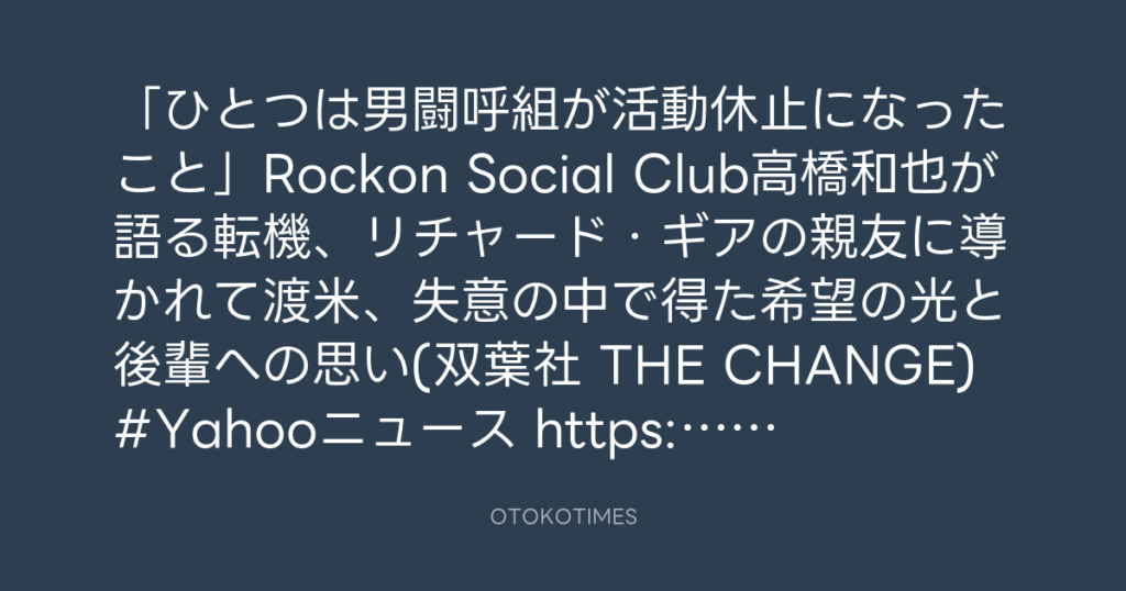 「ひとつは男闘呼組が活動休止になったこと」Rockon Social Club高橋和也が語る転... -