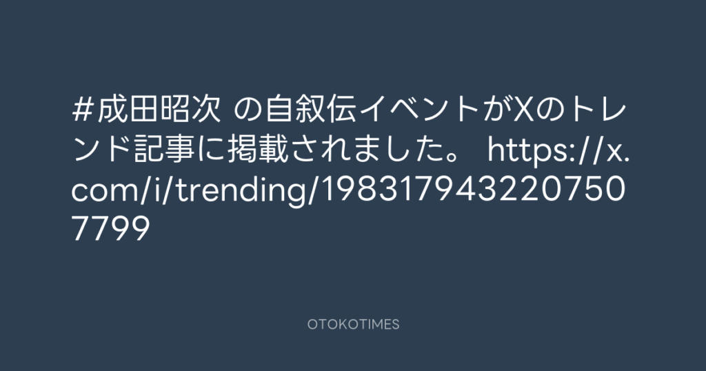 #成田昭次 の自叙伝イベントがXのトレンド記事に掲載されました。 https://x.com/i... -