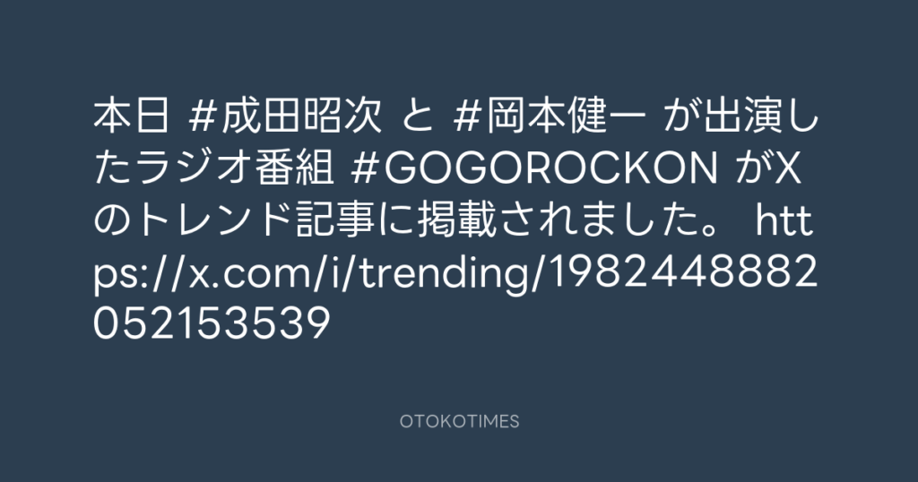 本日 #成田昭次 と #岡本健一 が出演したラジオ番組 #GOGOROCKON がXのトレンド記... -