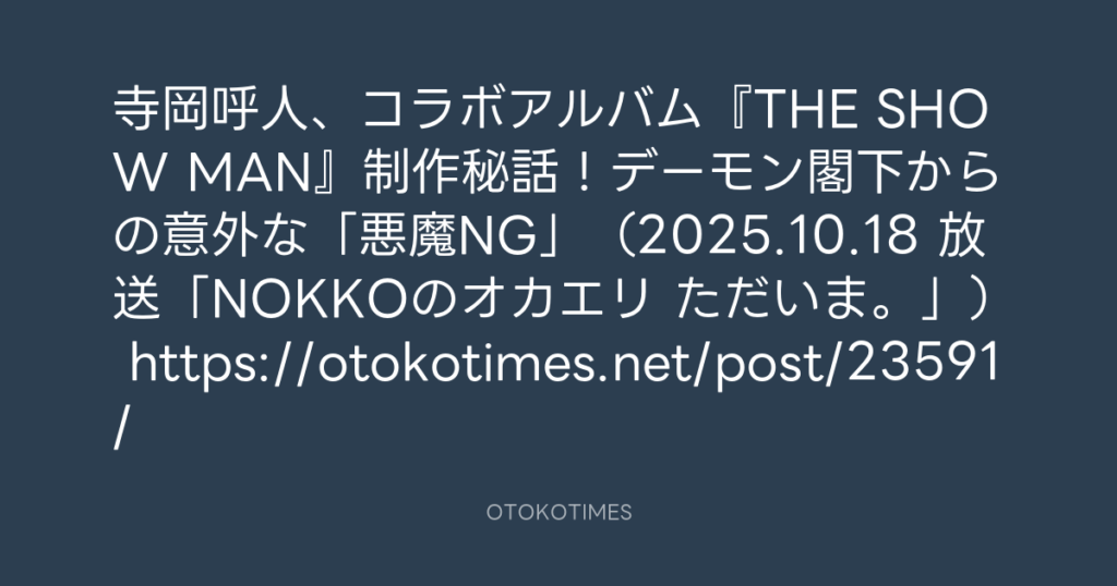 OTOKOTIMES @OtokoTimes1988 – 16:45・2025年10月19日