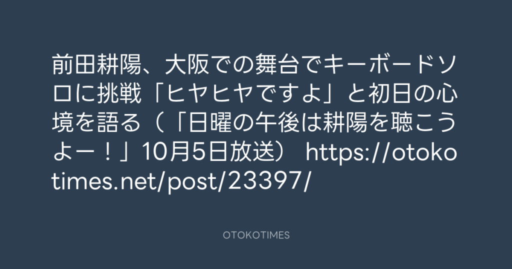 前田耕陽、大阪での舞台でキーボードソロに挑戦「ヒヤヒヤですよ」と初日の心境を... -