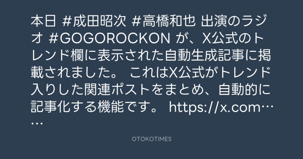 本日 #成田昭次 #高橋和也 出演のラジオ #GOGOROCKON が、X公式のトレンド欄に表示... -