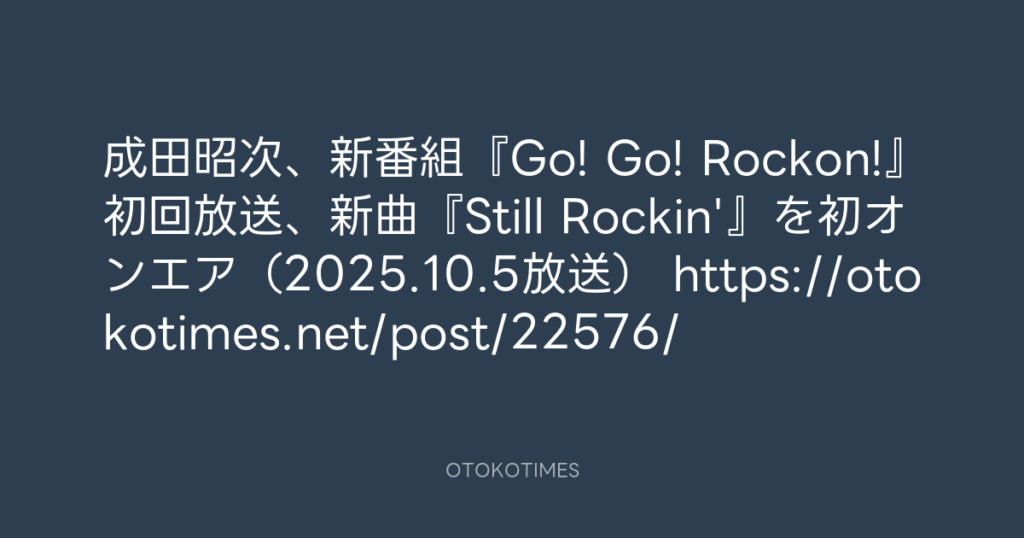 成田昭次、新番組『Go! Go! Rockon!』初回放送、新曲『Still Rockin'』を初オンエ... -