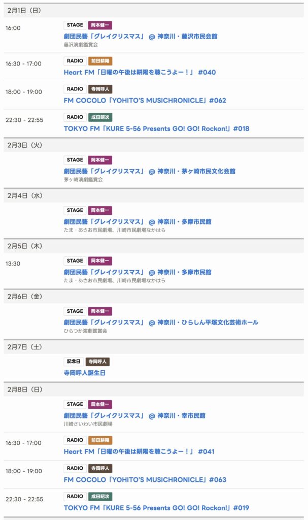2026/2/9〜2/21までのスケジュールをお届けします。 ※現時点で確認可能な範囲のみ... -