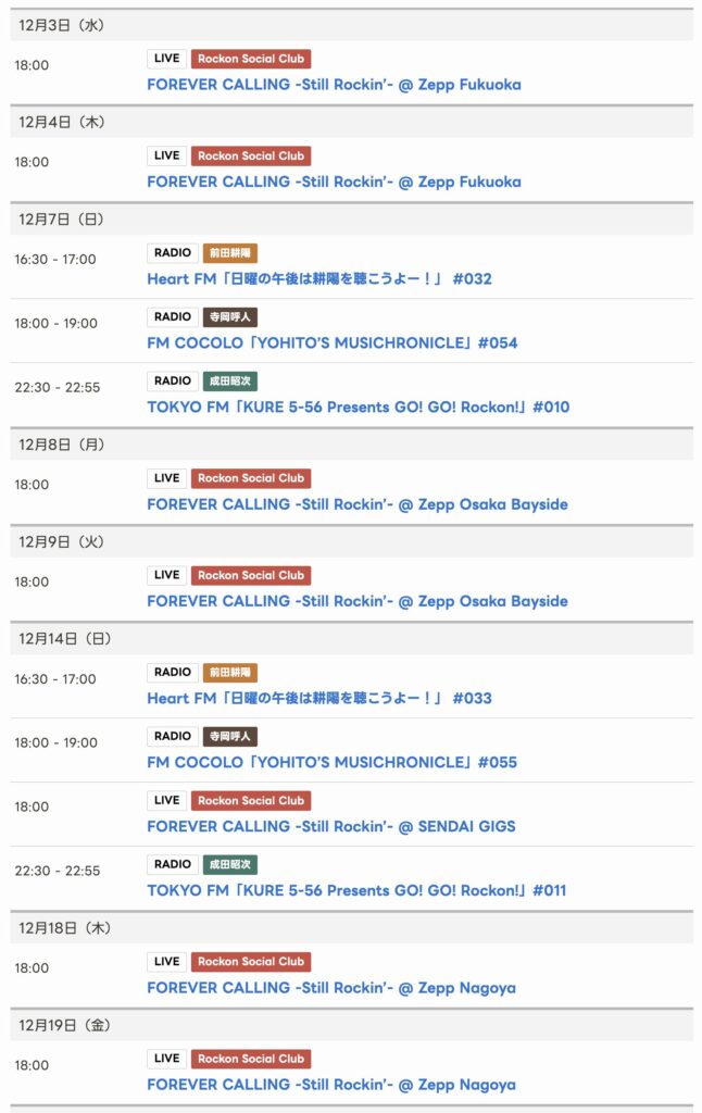 12/3〜12/19までのスケジュールをお届けします。 ※現時点で確認可能な範囲のみ。 ...