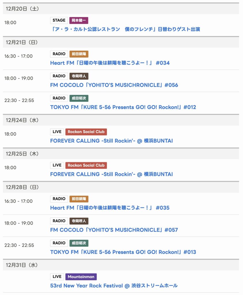 12/20〜12/31までのスケジュールをお届けします。 ※現時点で確認可能な範囲のみ。 ... -