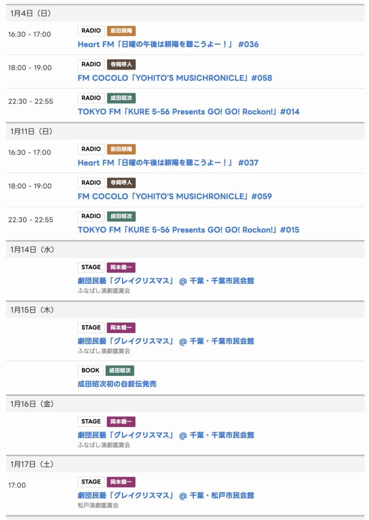 2026/1/4〜1/17までのスケジュールをお届けします。 ※現時点で確認可能な範囲のみ... -