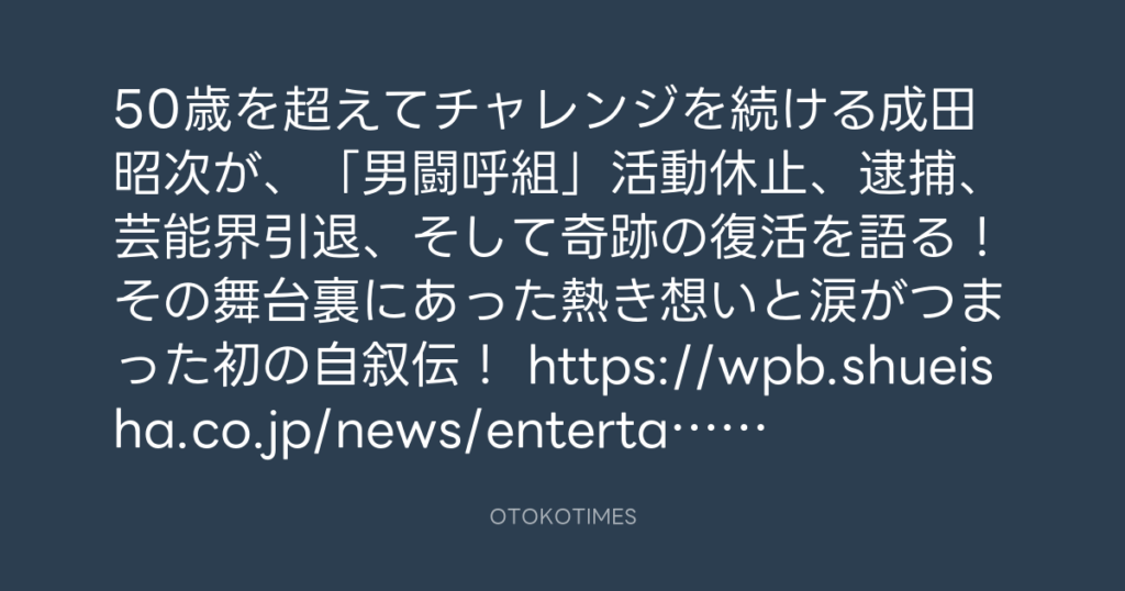 50歳を超えてチャレンジを続ける成田昭次が、「男闘呼組」活動休止、逮捕、芸能界... -