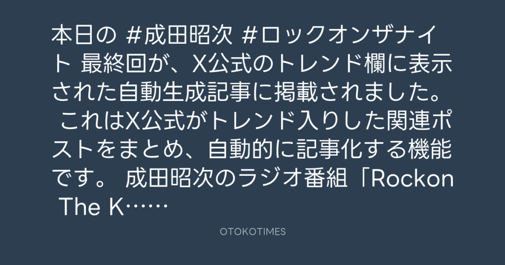 本日の #成田昭次 #ロックオンザナイト 最終回が、X公式のトレンド欄に表示された... -