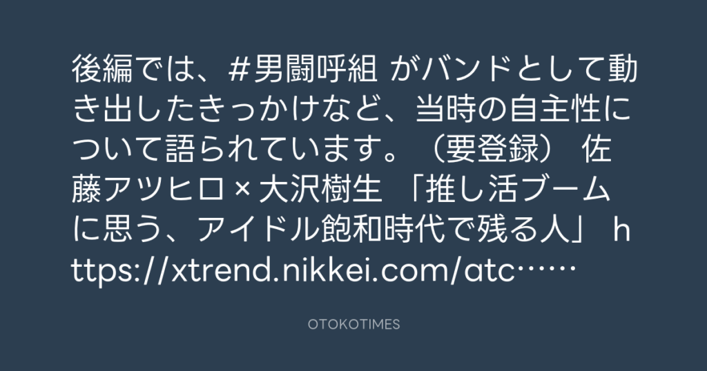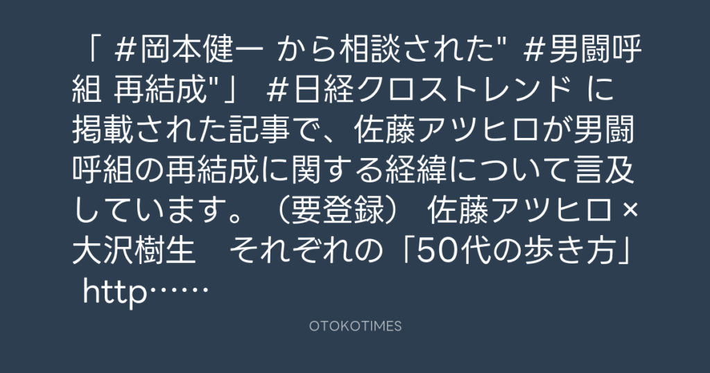 「 #岡本健一 から相談された" #男闘呼組 再結成"」 #日経クロストレンド に掲載さ... -