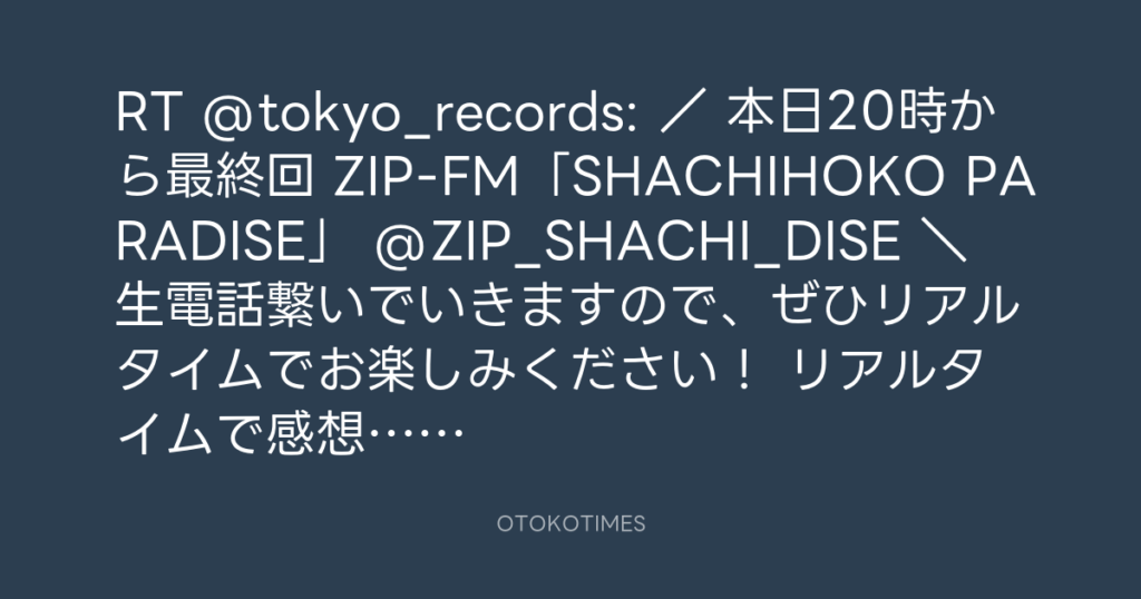 RT @tokyo_records: / 本日20時から最終回 ZIP-FM「SHACHIHOKO PARADISE」 @ZIP_S... -