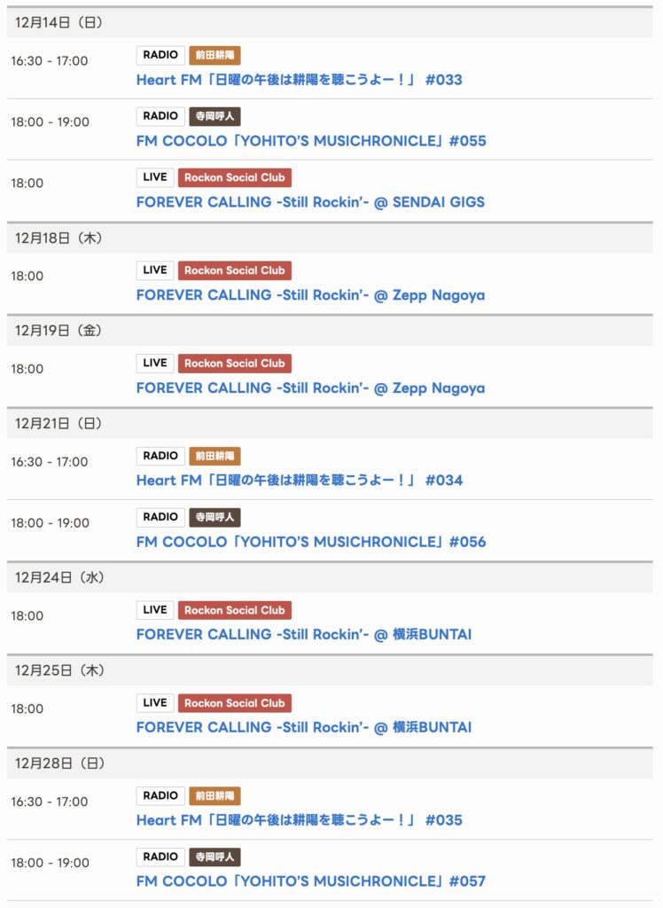 Rockon Social Club 2025 tour FOREVER CALLING Still Rockin' 🔗 9月13(土)12:0... -