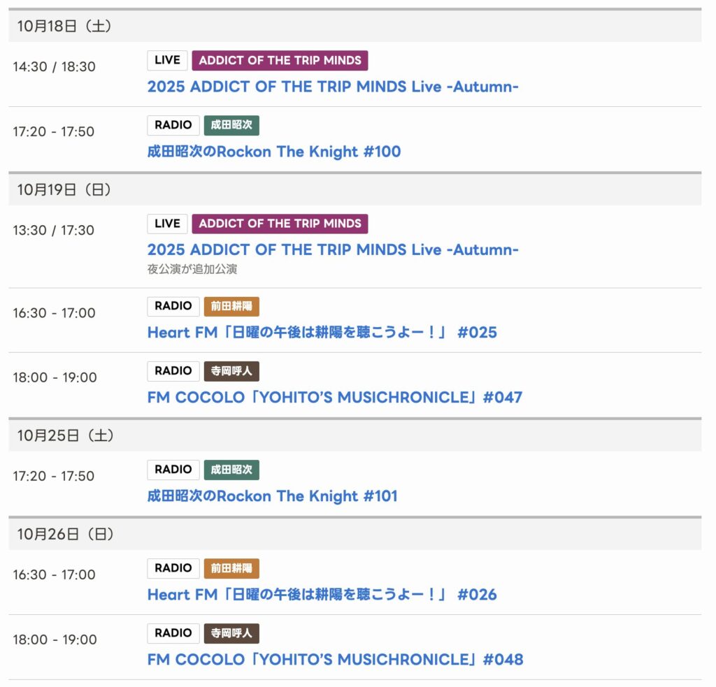 10/18〜10/26までのスケジュールをお届けします。 ※現時点で確認可能な範囲のみ。 ...