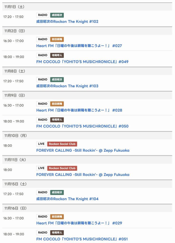 11/1〜11/16までのスケジュールをお届けします。 ※現時点で確認可能な範囲のみ。 ... -