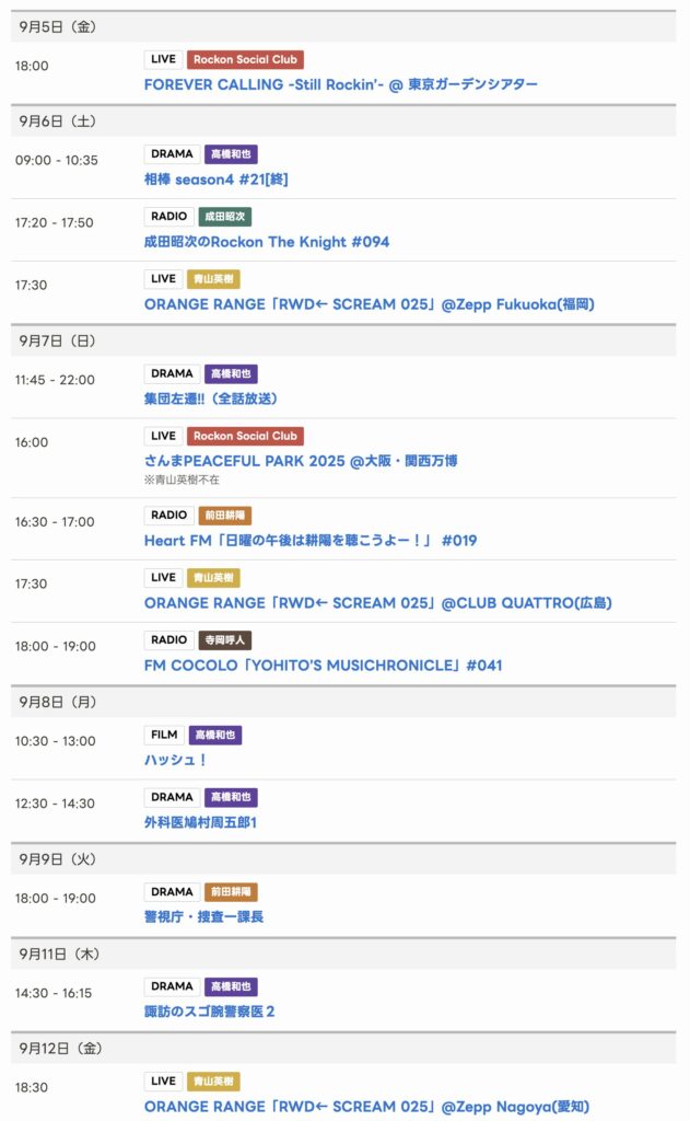 9/5〜9/12までのスケジュールをお届けします。 ※現時点で確認可能な範囲のみ。 (2... -