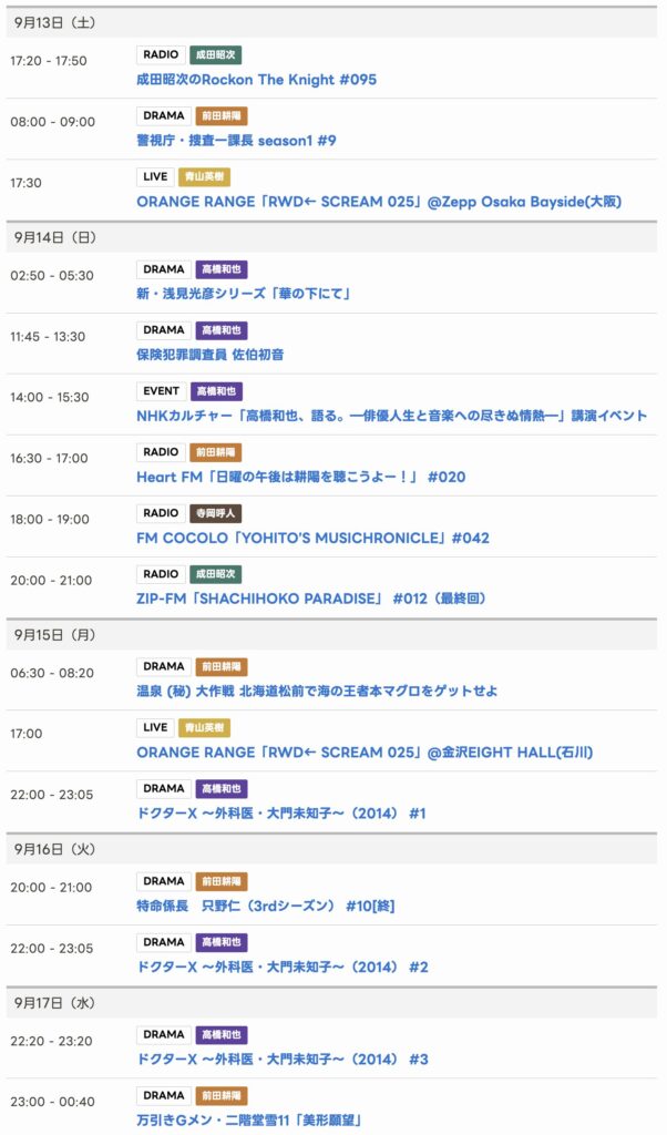 9/13〜9/17までのスケジュールをお届けします。 ※現時点で確認可能な範囲のみ。 (... -