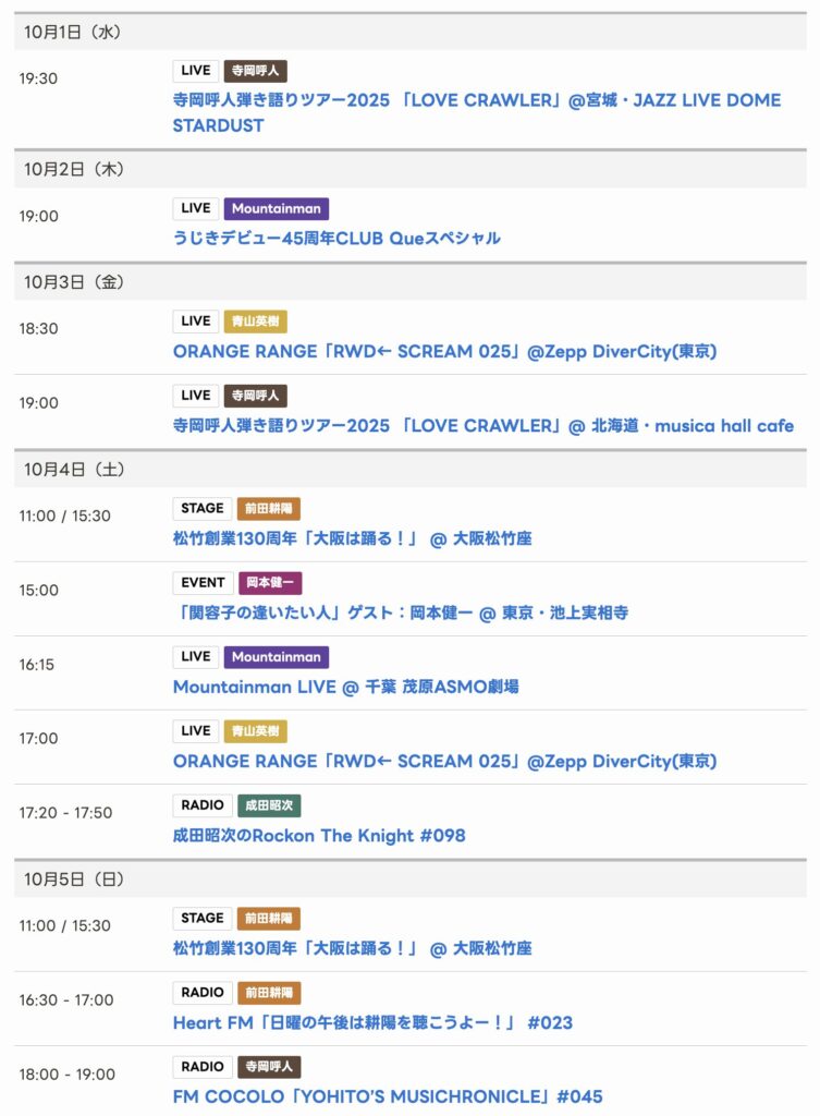 10/1〜10/5までのスケジュールをお届けします。 ※現時点で確認可能な範囲のみ。 (... -