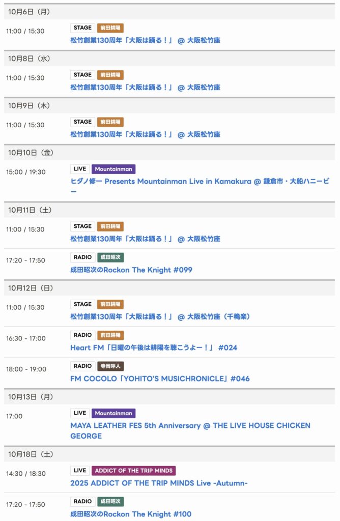10/6〜10/18までのスケジュールをお届けします。 ※現時点で確認可能な範囲のみ。 ... -