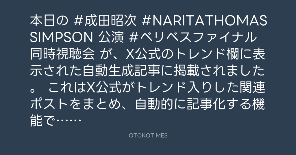 本日の #成田昭次 #NARITATHOMASSIMPSON 公演 #ベリベスファイナル同時視聴会 が、... -